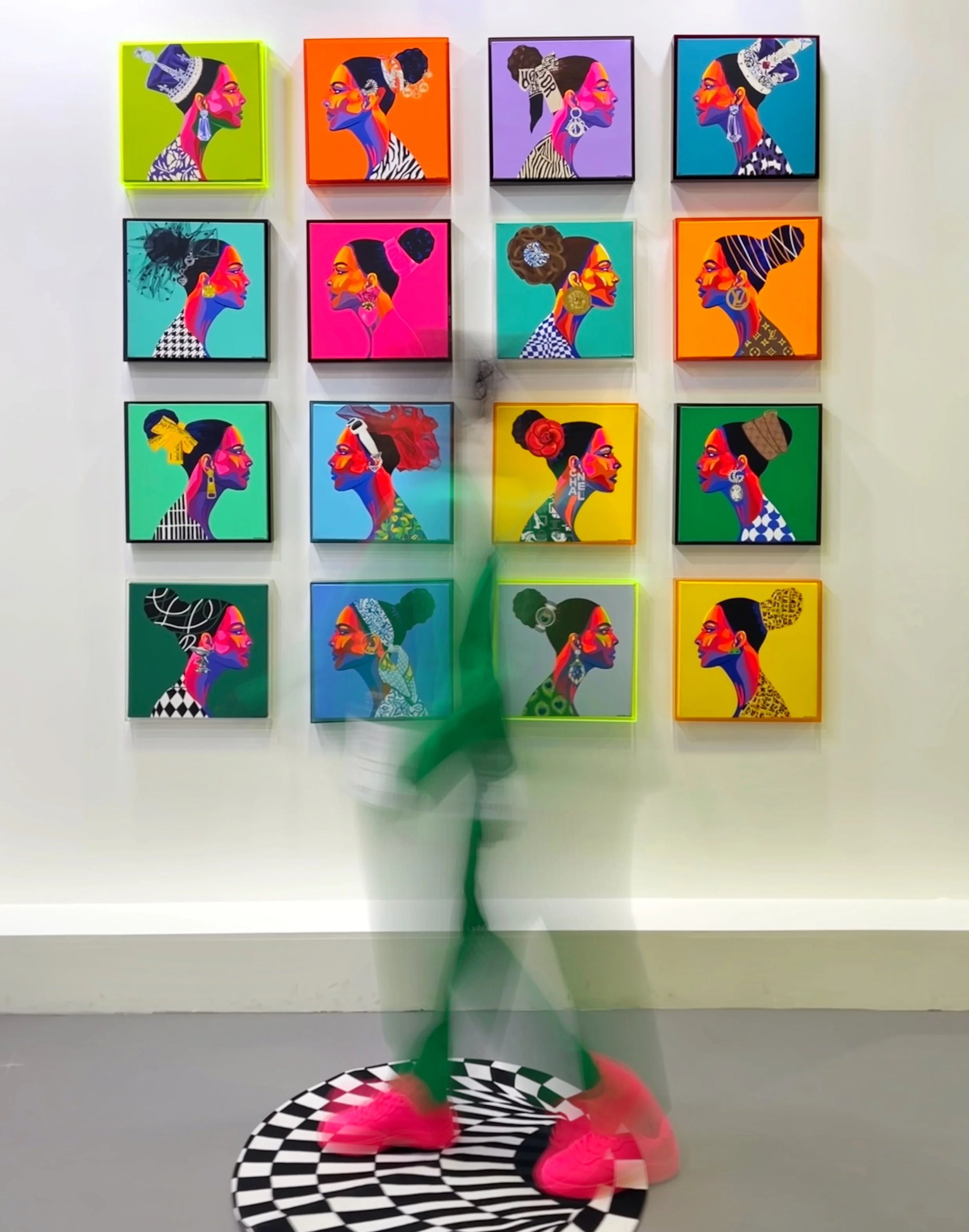 Inspired by luxury, ‘Once, twice, everything nice’ is a collection of 16 paintings with references to pop culture, retail therapy and consumerism. They make me feel good.
