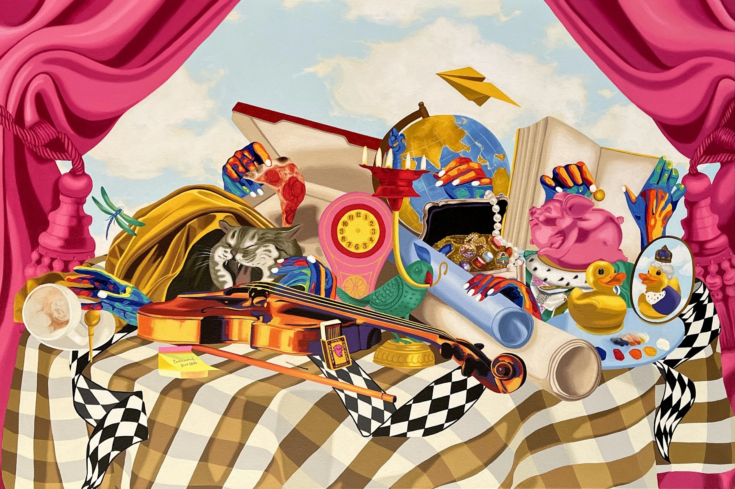 How much between here and history - Acrylic on canvas, 36x 48 Inches All that was, all that will be - Acrylic on canvas, 24 x 36 Inches Between sun and storm - Acrylic on canvas, 60 x 45 Inches Up in the air, down to earth - Acrylic on canvas, 60 x 45 Inches Tea for Two, Change for One - Acrylic on canvas, 60 x 45 Inches Inflated Dreams and Fossil Schemes - Acrylic on canvas, 60 x 45 Inches Sold The Quandary of Quacks - Acrylic on canvas, 30 x 40 Inches Sold An Allegory of Time - Acrylic on canvas, 30 x 40 Inches Beauty and the Priest - Acrylic on canvas, 30 x 40 Inches Change is Brew-Tea-Ful - Acrylic on canvas, 30 x 40 Inches Bitter Sweet Symphony - Acrylic on canvas, 30 x 36 Inches Sold